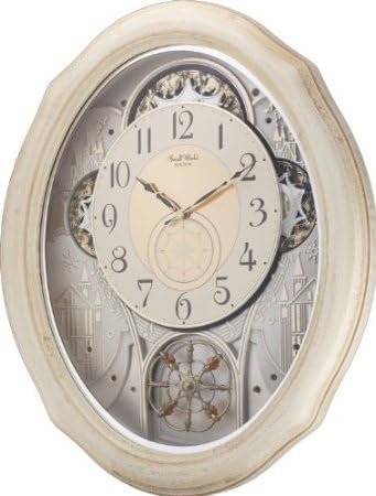 The RHYTHM Ivory Cottage clock is an elegant analog wall clock featuring a classic design and musical capabilities. It is designed to enhance your living space with both its aesthetic appeal and its melodic hourly chimes.